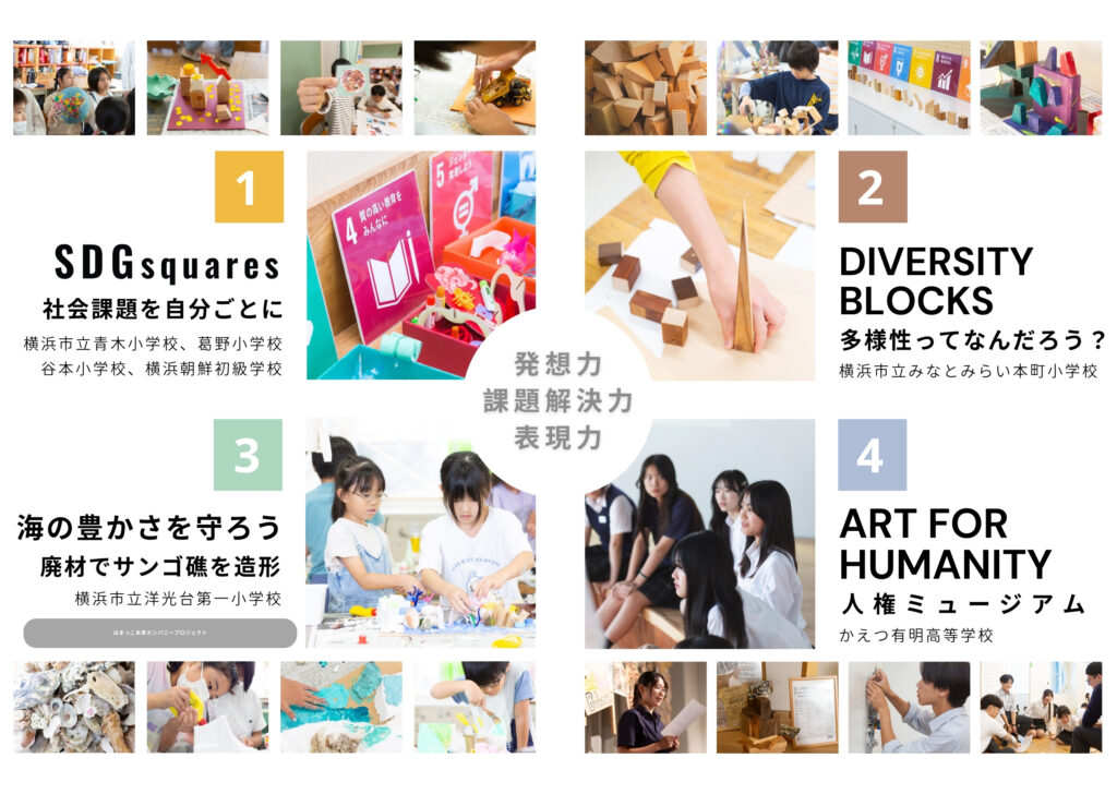横浜JRタワーアトリウムで4日間にわたり開催された展示には、参加校の教職員や児童、保護者、駅を利用する多くの市民が訪れ、子どもたちの作品に目を留め、その言葉にじっと向き合う姿がありました。SDGsや多様性、人権といった社会課題に子どもたちが向き合い、考え、表現した過程が来場者に深い印象を与え、「独創性にあふれる作品に心を引きつけられた」との感想も寄せられました。本展示が、学びの現場でのアートの意義を提唱し、地域社会との対話とつながりを育む機会となったことを喜ばしく思います。