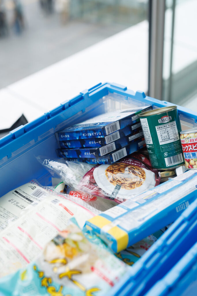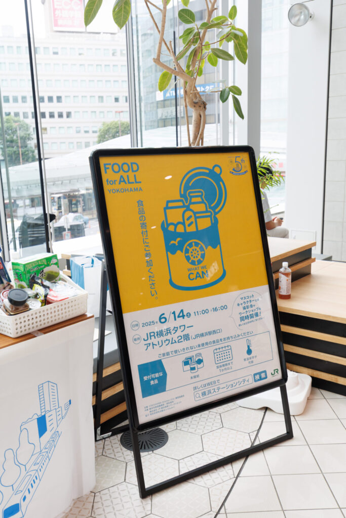 2025年6月14日、JR横浜タワーアトリウムにて開催された、Yokohama Station City主催のフードドライブイベント『FOOD for ALL YOKOHAMA』。当日は、大きなプラスチック容器に未開封で賞味期限が切れていない食材が次々と集まっていきました。