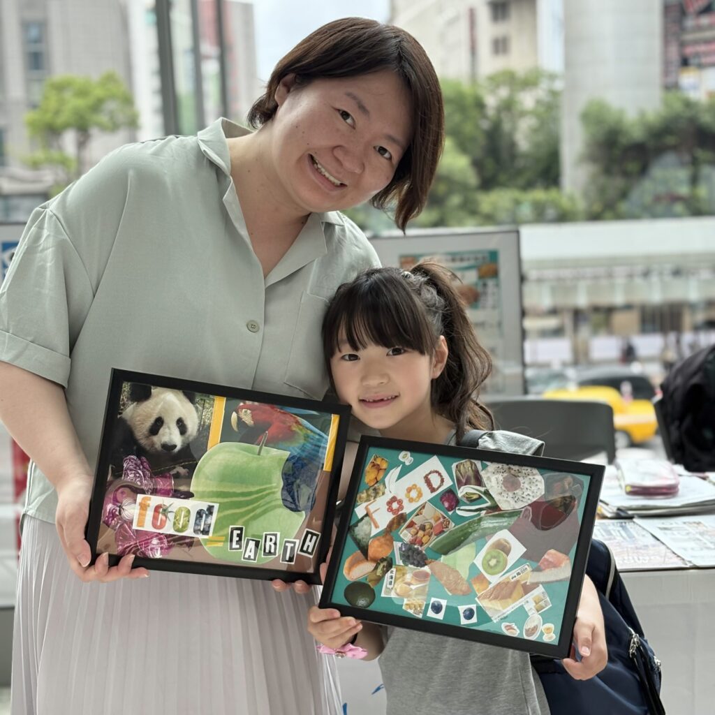 当日は、小学校で取り組んだ制作と同じ内容のワークショップを、フードドライブの会場で開催しました。参加者お一人お一人、食べ残しや冷蔵庫の奥で眠ったままの食材、いろんなことに思いを馳せながら素晴らしい作品を制作してくれました!